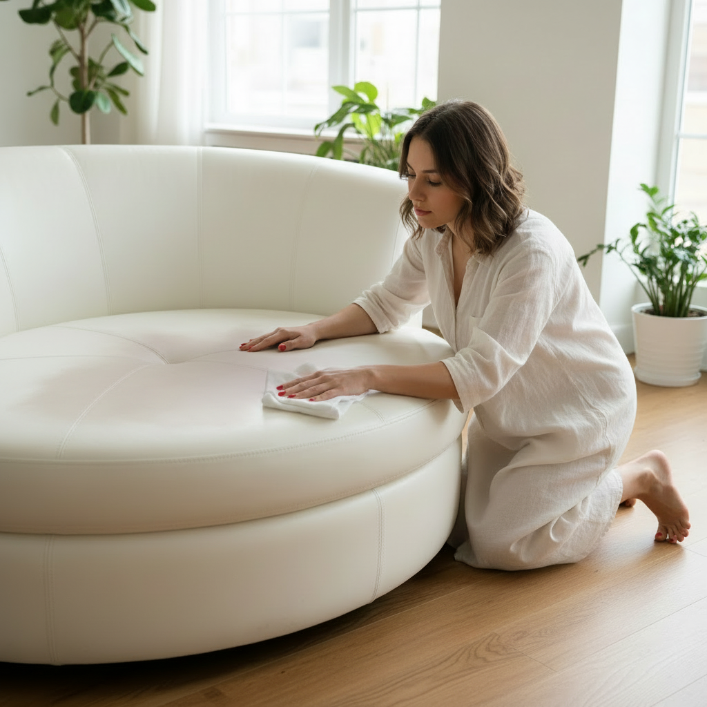 Pflegen Sie Ihr Leder vierteljährlich. Nur wenn die Poren sauber sind, kann das Leder die Feuchtigkeit aufnehmen. Ein „Zuschmieren“ von Schmutz wird so verhindert und die Natürlichkeit Ihrer Garnitur bleibt über Jahrzehnte erhalten.