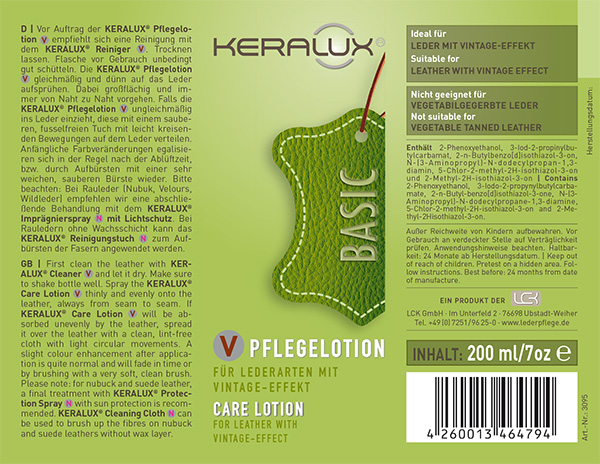 Vintage-Effekt-Leder entwickelt sich mit der Zeit weiter. Um jedoch ein unkontrolliertes Austrocknen oder Ausbleichen zu verhindern, empfehlen wir eine Anwendung im vierteljährlichen Rhythmus. So bleibt die natürliche Schönheit erhalten.