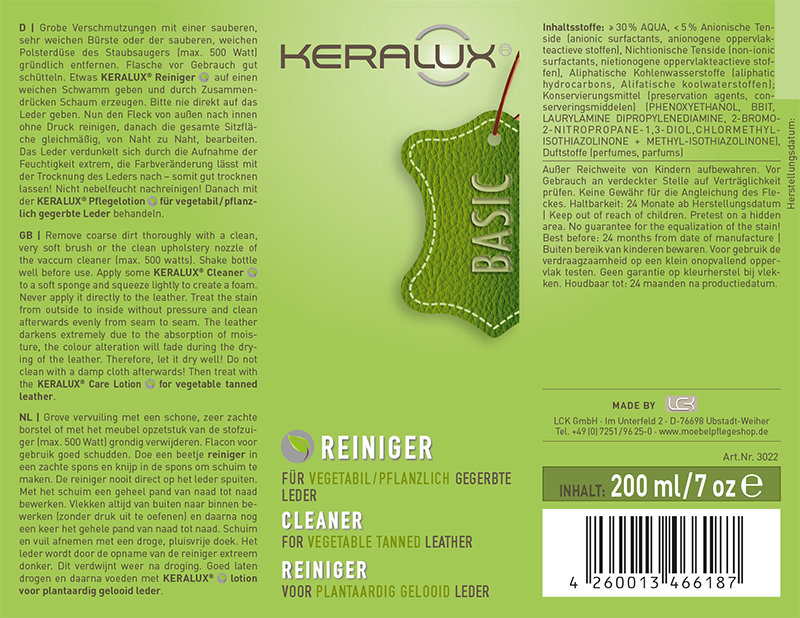 Bei der vegetabilen Gerbung wird auf chemische Chromsalze verzichtet. Das Ergebnis ist ein charakterstarkes Leder, das jedoch keine schützende Deckschicht besitzt. Unser KERALUX® Set wurde exakt auf diese sensible Zellstruktur abgestimmt.